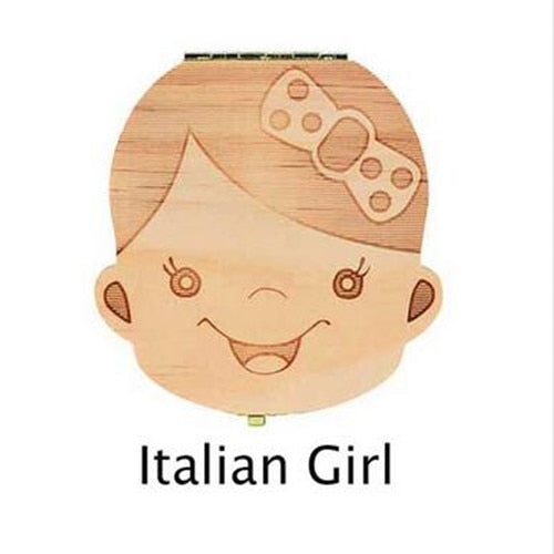 Tooth Box Dutch /Portugue / Spanish/English/French/Russian/ Italian Wood Tooth Box Organizer Save Milk Teeth Wood Storage Teeth